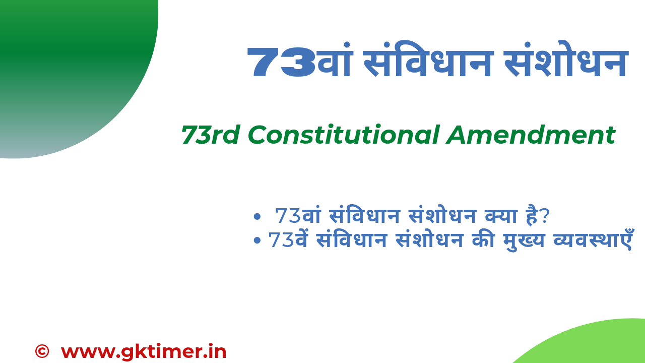 इस लेख में 73वें संविधान संशोधन के बारे में जो जानकारी दी गई है वो इस प्रकार से है :-