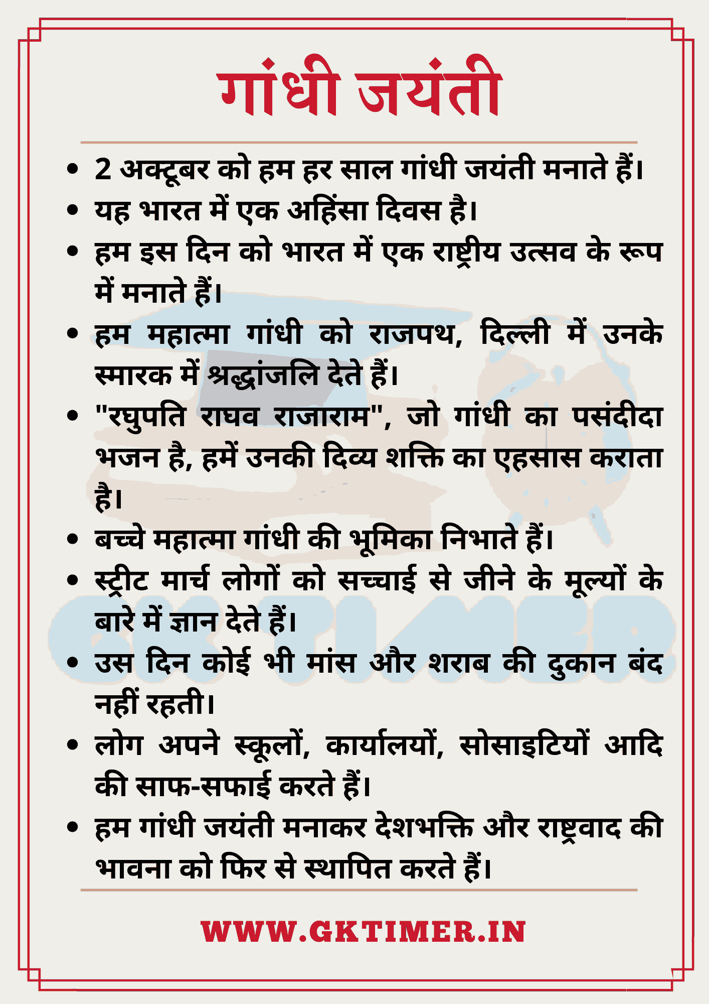 3. इस दिन को हम भारत के तीन राष्ट्रीय त्योहारों में से एक के रूप में मनाते हैं, जो हर साल 2 अक्टूबर को मनाया जाता है।