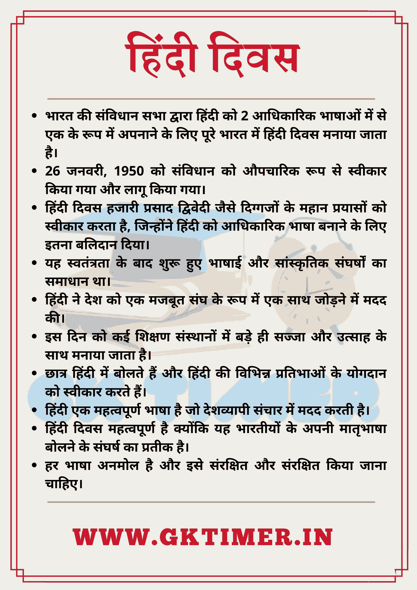 - हिंदी दिवस महत्वपूर्ण है क्योंकि यह भारतीयों के अपनी मातृभाषा बोलने के संघर्ष का प्रतीक है।