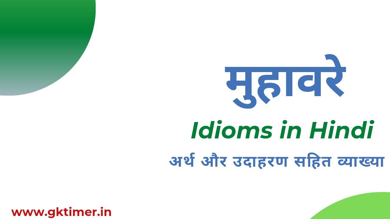 प्रिय, पाठकों इस पोस्ट में हमने मुहावरों ( Idioms in Hindi) के बारे में जानकारी प्रदान की है। हमने यहाँ मुहावरों के अर्थ(Muhavare in Hindi with meaning) और उनकी उदाहरण सहित व्याख्या की है। किसी भी भाषा की समृद्धि और उसकी अभिव्यक्ति की क्षमता के विकास हेतु मुहावरों और लोकोक्तियों का प्रयोग उपयोगी होता है। भाषा में इनके प्रयोग से सजीवता और सौंदर्य आ जाता है, इसके फलस्वरूप पाठक या श्रोता शीघ्र ही प्रभावित हो जाता है। जिस भाषा में मुहावरों (Idioms) और लोकोक्तियों (Proverbs) जितना अधिक प्रयोग होगा, उसकी अभिव्यक्ति क्षमता उतनी ही प्रभावपूर्ण व रोचक होगी।