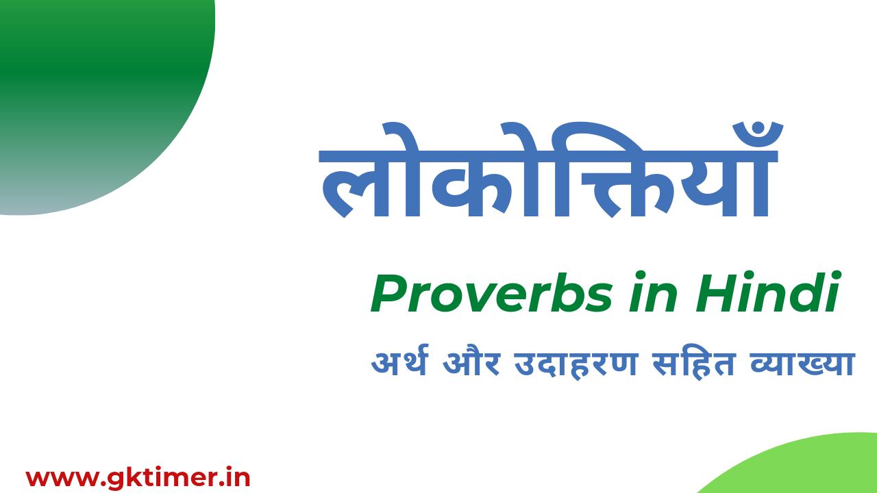 प्रिय, पाठकों इस पोस्ट में हमने लोकोक्तियाँ ( Proverbs in Hindi) के बारे में जानकारी प्रदान की है। हमने यहाँ लोकोक्तियों के अर्थ (Proverbs in Hindi with meaning) और उनकी उदाहरण सहित व्याख्या की है। किसी भी भाषा की समृद्धि और उसकी अभिव्यक्ति की क्षमता के विकास हेतु मुहावरों और लोकोक्तियों का प्रयोग उपयोगी होता है। भाषा में इनके प्रयोग से सजीवता और सौंदर्य आ जाता है, इसके फलस्वरूप पाठक या श्रोता शीघ्र ही प्रभावित हो जाता है। जिस भाषा में मुहावरों (Idioms) और लोकोक्तियों अधिक प्रयोग होगा, उसकी अभिव्यक्ति क्षमता उतनी ही प्रभावपूर्ण व रोचक होगी।
